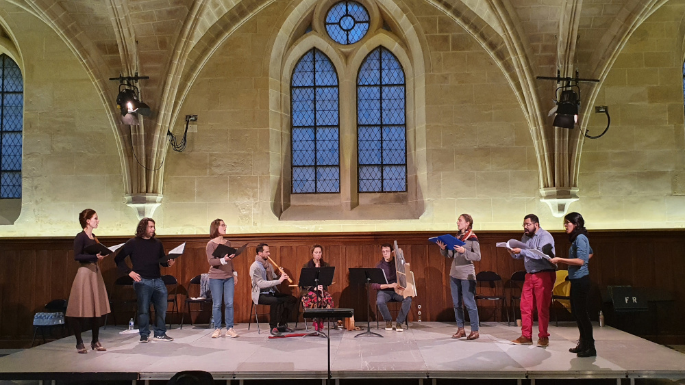 Ce concert était le point d’orgue d’une formation de cinq jours, assurée par David Chappuis (polyphonie, solmisation), Olivier Bettens (monodie, déclamation) et Tiago Simas Freire (ornementation et écriture instrumentales), dont le but premier était de permettre à de jeunes professionnels d’approfondir leur connaissance et leur pratique des musiques de Philippe de Vitry et Guillaume de Machaut.