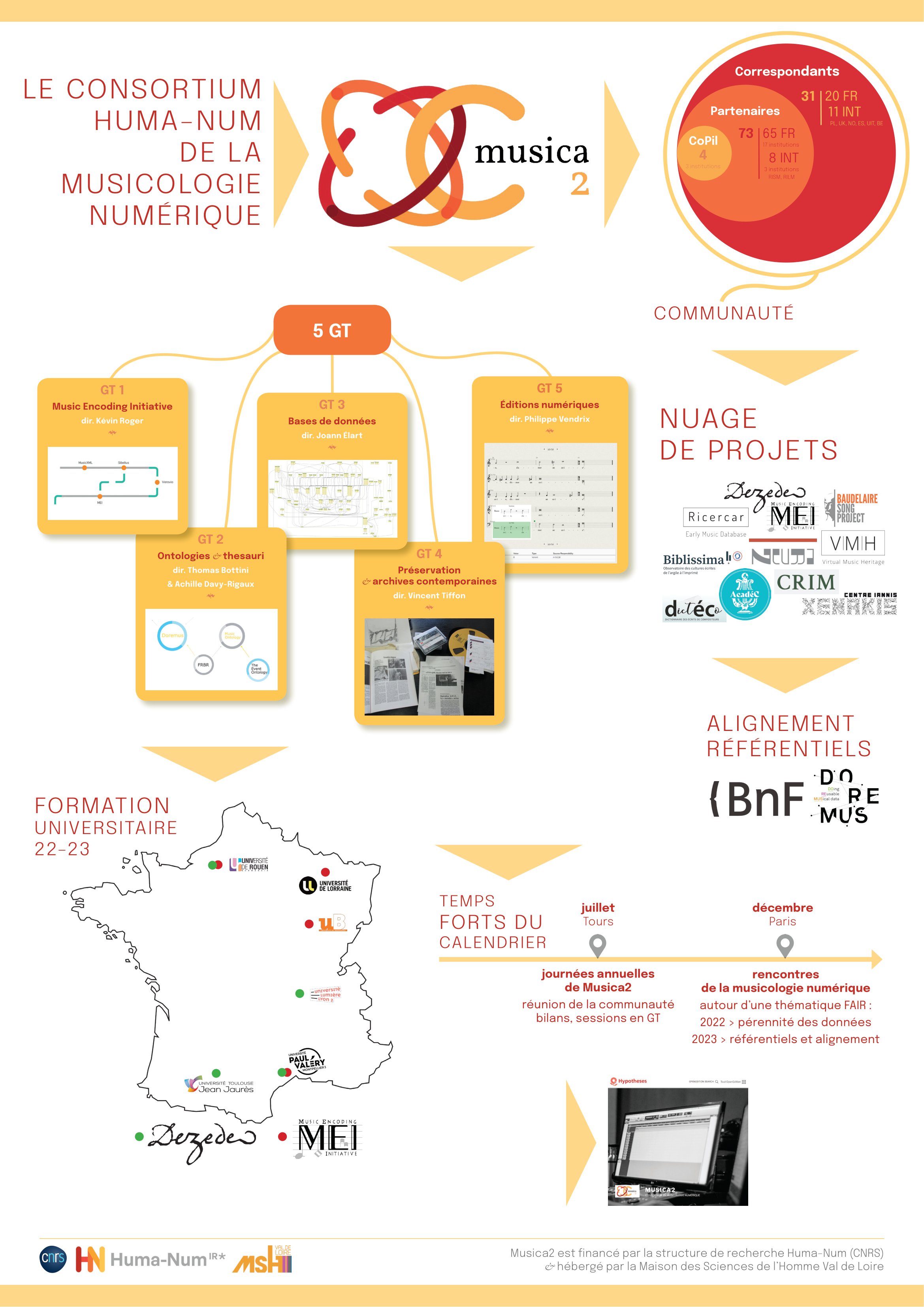 Labellisé par le Conseil scientifique de l’IR* Huma-Num, MUSICA2 a inauguré cinq groupes de travail (GT) :