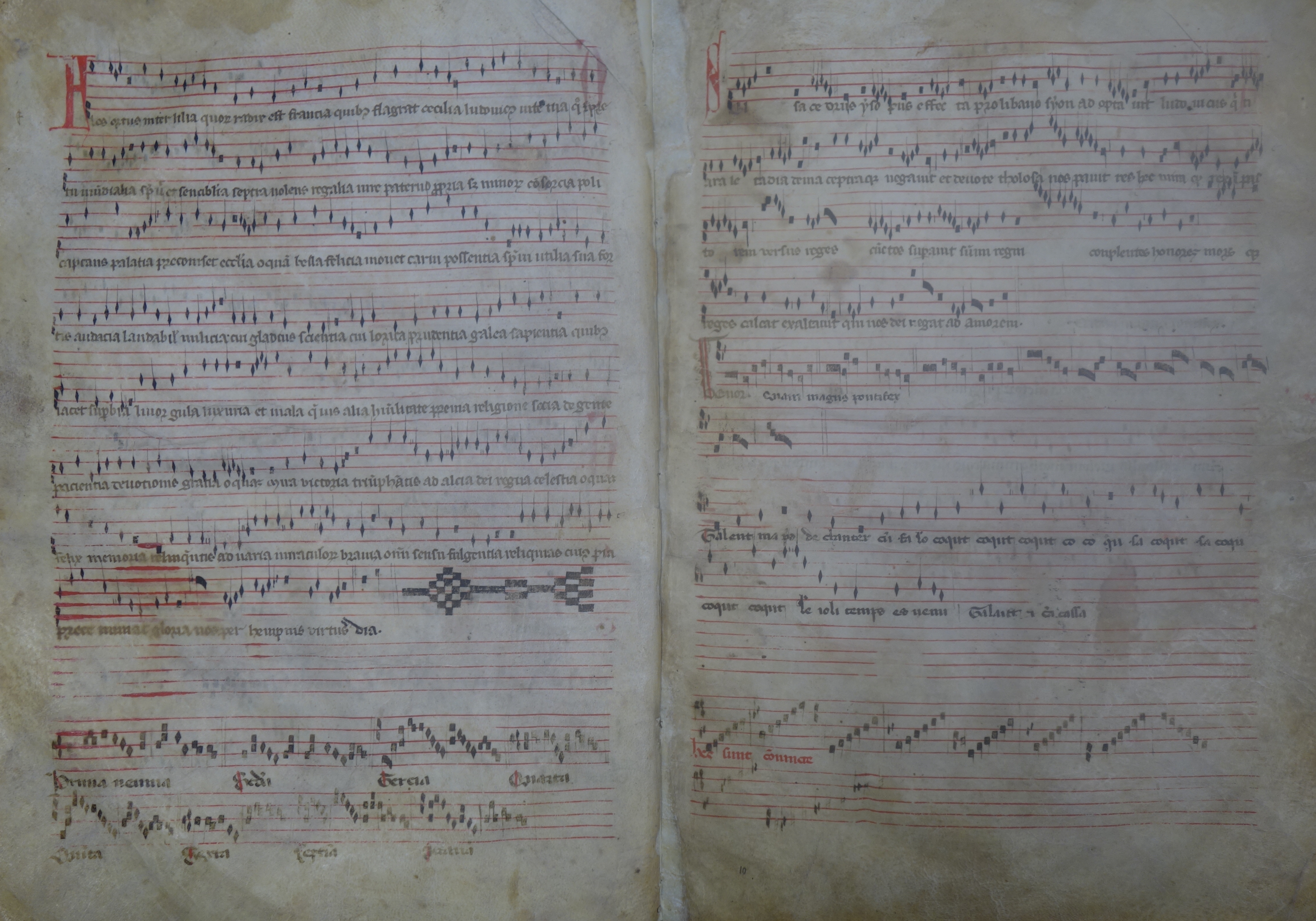 La formation professionnelle de la fondation Royaumont, sous la direction de David Chappuis et Chloé Loneiriant, interrogera ce manuscrit à la lumière des pratiques historiques décrites dans les traités médiévaux (notation, solmisation, contrepoint, ornementation), telles qu’elles peuvent être redécouvertes aujourd’hui grâce au concours des humanités numériques, en les mettant en regard avec une tradition orale vivante, la musique de l’Inde du Nord, autour de thématiques parallèles : modes de transmissions, répertoires, improvisation, modalité, notes pôles, motifs mélodiques, agilité vocale, ornementation, intonation, rythme et notation.